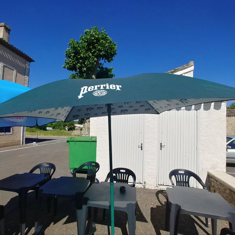 Sombrilla personalizada de marca para exteriores de 2,5x2,5 m, sombrilla para patio, hotel, restaurante, cafetería, sombrilla RPET