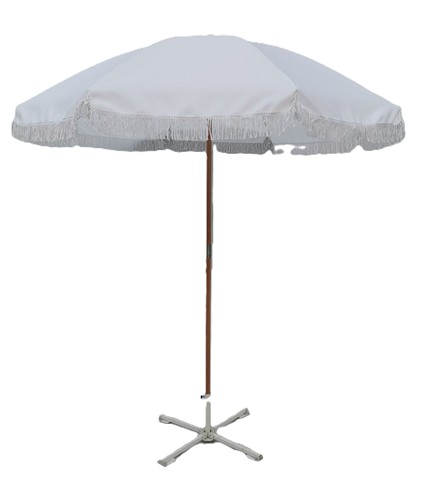 ร่มสนามกลางแจ้งทรงกลมยาว3ม. ร่มกันแดดร่มชายหาดสีขาวมีพู่